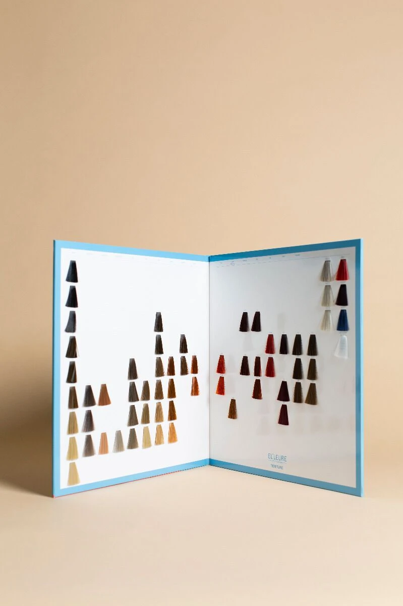 De Elleure Kleurenkaart geeft jou een compleet overzicht van alle Elleure Teinture haarkleuren. De Colour Chart bevat kleurstalen van alle kleuren haarverf.